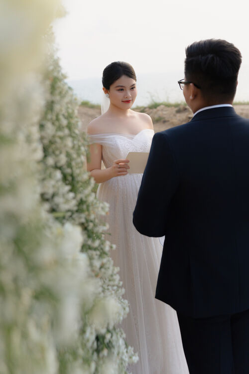 Tim anh như muốn vỡ tung vì hạnh phúc. Tiếng đồng hồ tích tắc chậm lại, từng giây từng phút trôi qua thật chậm, nhưng cũng thật nhanh. Nhớ lại những ngày đầu ta gặp nhau, trái tim anh đã rung động ngay từ cái nhìn đầu tiên. Và rồi, tình yêu của chúng mình lớn dần theo từng ngày. Giờ đây, khi đứng trước em trong ngày trọng đại này, anh mới thực sự cảm nhận được ý nghĩa của hai từ “ mãi mãi”. Em à, em không chỉ là người yêu, em còn là bạn, là tri kỷ, là tất cả những gì anh đang có. Cảm ơn em đã đồng hành cùng anh trong suốt những năm qua. Anh hứa sẽ yêu em, trân trọng em và cùng em xây dựng một gia đình hạnh phúc.